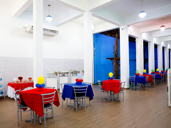 Para acomodar confortavelmente toda família e amigos que tanto amamos. Ambiente amplo e ao mesmo tempo bastante integrado, para comer e beber à vontade, nutrir a criança interior dos adultos e deixar nossas crianças (as menores mesmo) brincarem à vontade e em segurança.